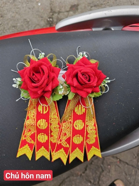 Bông Chủ Hôn Đỏ Nhung Cao Cấp
