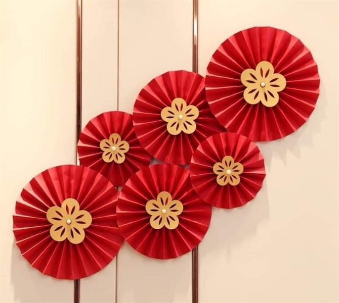Set Quạt Đỏ Bông Hoa (6 Cái)