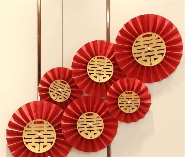 Set Quạt Đỏ Chữ Hỷ (6 Cái)